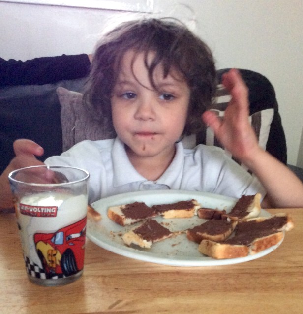 Reilly at his Grandad’s.  Nutella on toast every night straight from school.