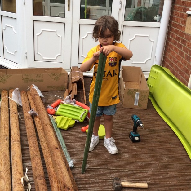 Anyway an enormous swing, slide and see saw set from Smyth’s was collected today and they went straight into the garden to put it up regardless of the rain, Reilly loves the rain and he loves a screwdriver in his hand so he’s happy.