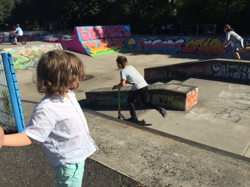 He loves watching the skateboarders icecream in hand, me not so much. I fell off one when I was 30 trying to be a cool Mam and broke my leg in 4 places so I ushered him past quite quickly, I don’t mind him sitting on one in our living room but thats as far as it goes.