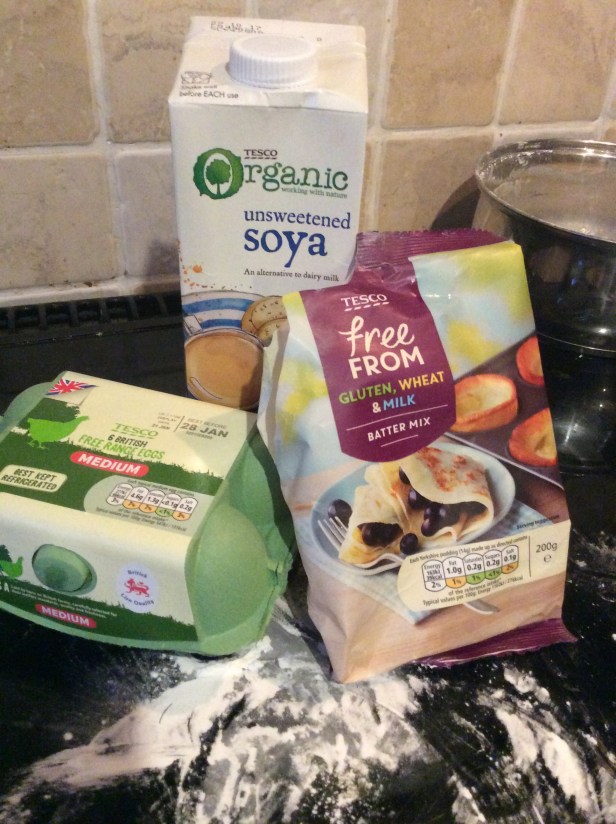 Anyway when shopping on Sunday at Tesco Reilly insisted on putting eggs in the trolley so I knew it was coming. So tonight I have made gluten and dairy free pancakes with Reilly’s help of course and Reilly is actually eating them!  He gets particularly excited about them bring flipped.  I have only shot a very small portion of my cooker because the rest of the cooker still has noodles and various bits of quorn and carrot from a stir fry 2 nights ago.  I know, I’m busy!  Look at him interacting though!!