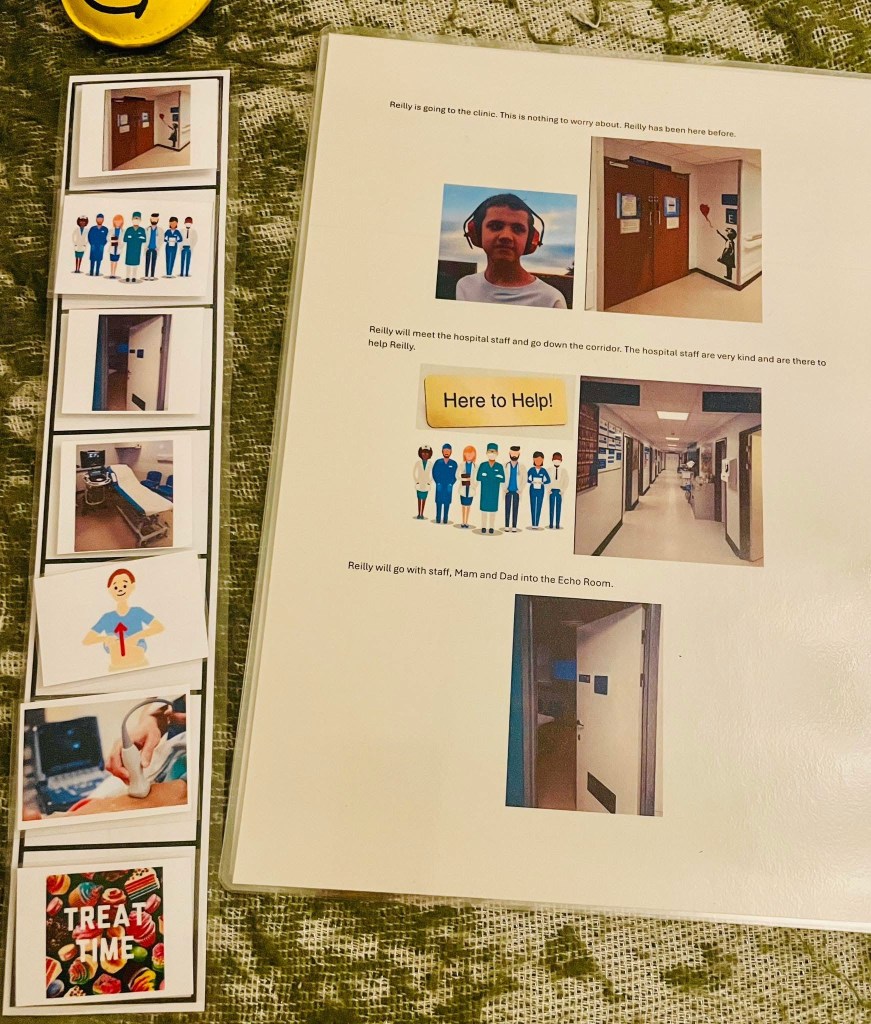 That’s why I want to say the biggest thank you to Reilly’s CLDT and The Freeman Hospital. We discussed why it was hard and what we could do try and make it better as these tests on his heart are essential with the medication he takes. The visuals are to help him prepare, they rearranged his appointment to a quieter time and even gave us the echocardiogram gel so he can get used to it in his own space.
